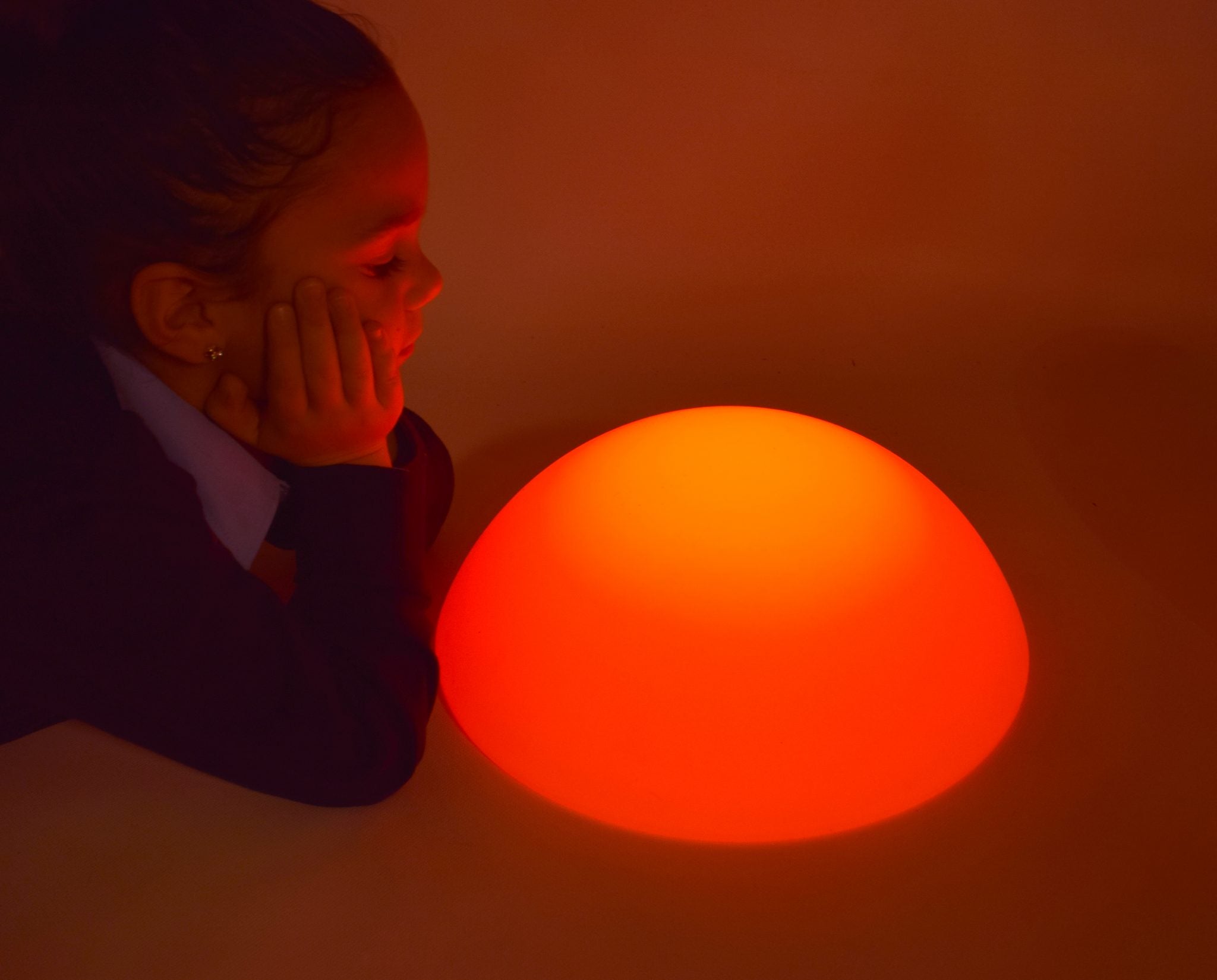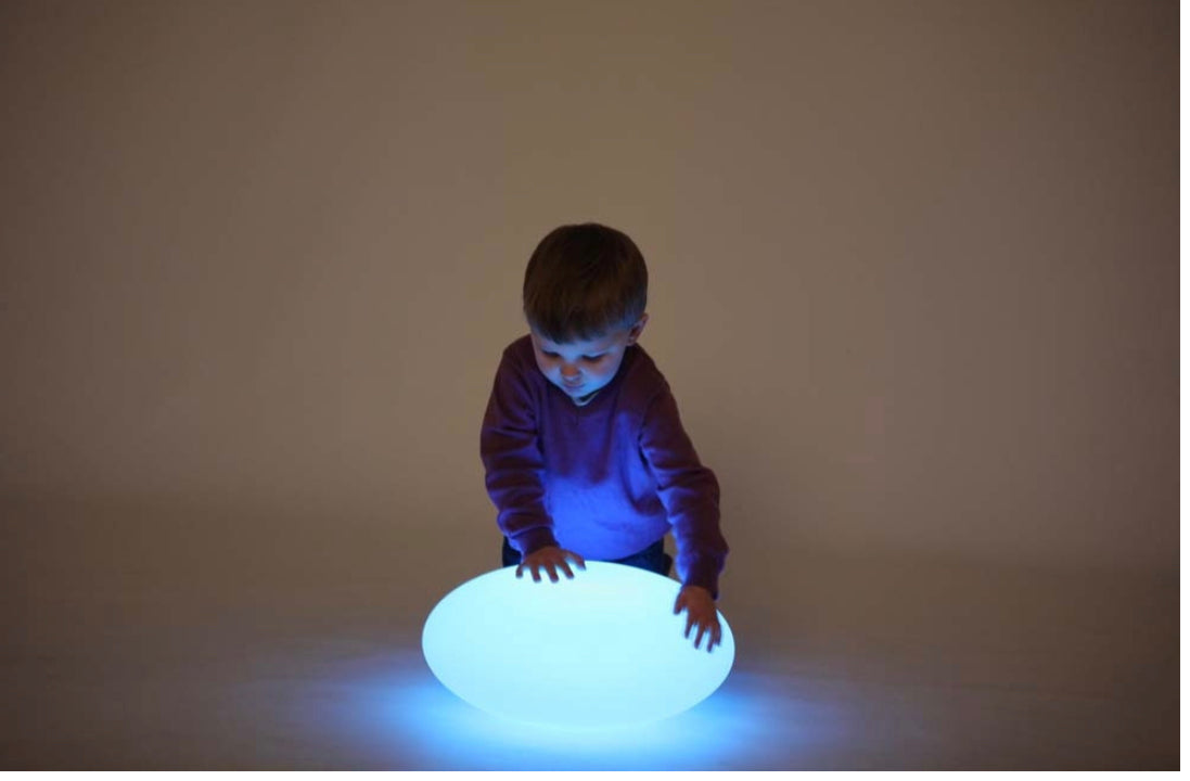 Our Sensory Light Up Pebble Mood Light Colour changing furniture is the ultimate in mood lighting. Completely portable and lasting up to 10 hours after a full charge. Use the remote to change between light modes, phases and colours or simply set to fade between the 6 main colours. The remote control can also be used to control multiple units. Battery life approximately 10-12 hours. Charge time approximately 4-5 hours for a full charge. Features of the Sensory Light Up Pebbles Mood Light: Ambience mood lighting calming & relaxing Long battery life Remote control for colour & lighting phases Remote control can also be used to control multiple units Size: 34cm diameter x 12cm tall Colour: White Power Source: Mains Usage: Sensory Material: Plastic Weight: Approx.: 1 kg. Please note: This product is designed for indoor use only. Keep away from water and avoid use in damp conditions.