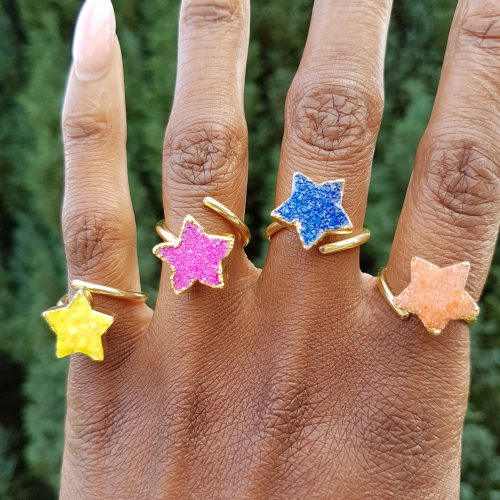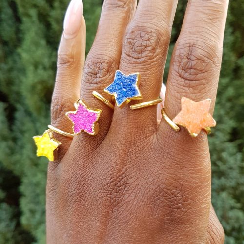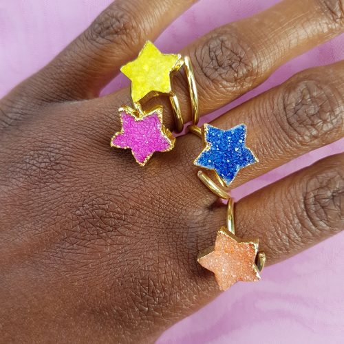 Colourful star druzy stone rings – Assorted Colours (Limited Edition)