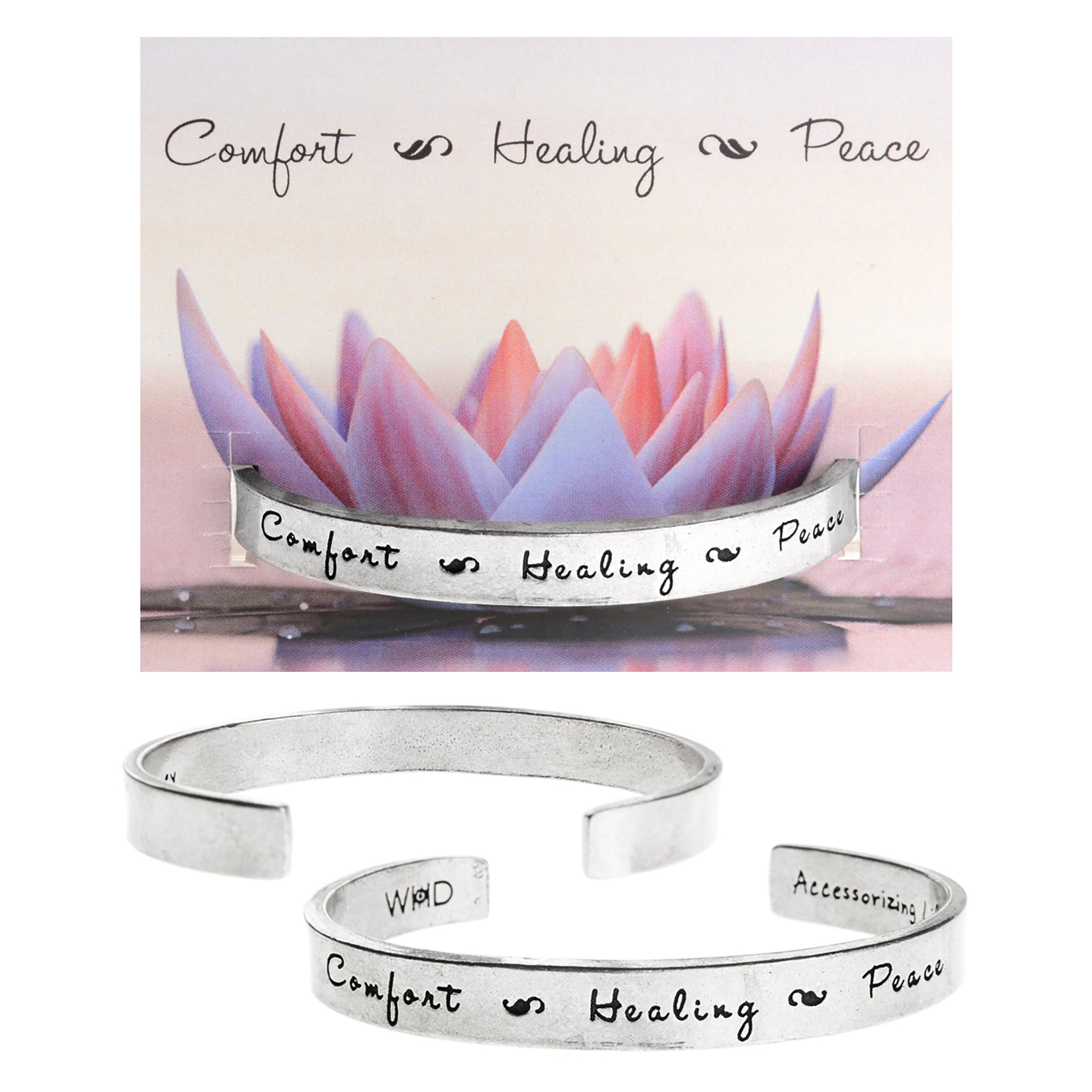 Comfort-Healing-Peace Quotable Cuff Bracelet on Comfort Healing Peace Backer Card