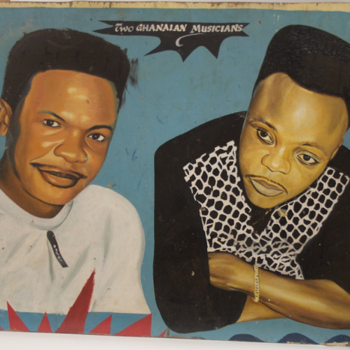 39 x 46 1/4″ (99 x 117.5 cm) These are two very famous musicians in Ghana, both Ashanti. The man on the left is Nana Acheampong; the one on the right is Daddy Lumba.
