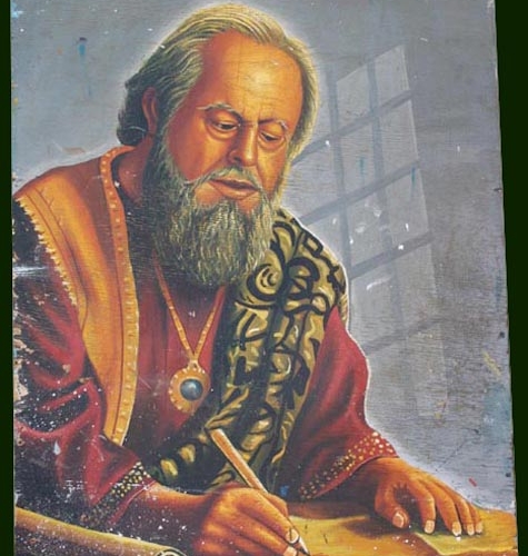 Ghana is one of the countries of West Africa with the highest proportion of Christians. Africans, no matter what their religious affiliation, are very spiritual people. Therefore it is no surprise that one of the most popular subjects for commercial artists promoting their own businesses is Jesus Christ and other religious imagery. This sign measures 32 1/2 x 21″ (82.5 x 53 cm) and appears to be a saintly figure although he is unidentified.