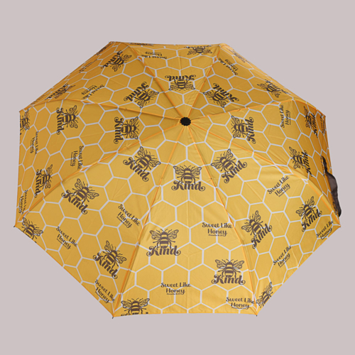 The umbrella and matching sleeve feature a warm yellow honeycomb pattern that brings a touch of sunshine to rainy days. Emblazoned with the thoughtful message Bee Kind, itís more than just an umbrella ñ itís a gentle reminder to spread kindness and positivity wherever you go. Whether shielding from rain or sharing a message of love, this umbrella offers both practical protection and an uplifting message. Perfect for anyone looking to brighten a rainy day, itís a functional and inspiring accessory to have with you every day.