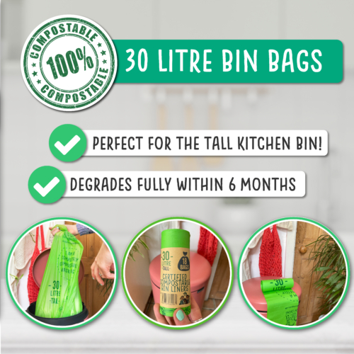 🌎EXTRA HEAVY DUTY: Our garbage liners match other top brands for holding heavy trash, but without any of the ecological waste! Strengthened & lightweight, our durable garbage bags are 25 microns thick and are completely compost friendly. They measure 104cm around and 64cm long to fit 20L and 30L bins- especially the tall slim kitchen bin!