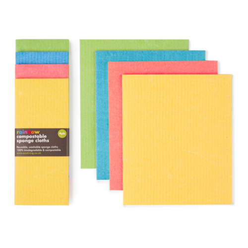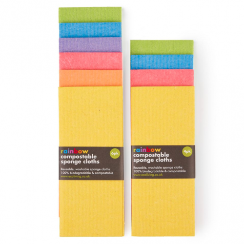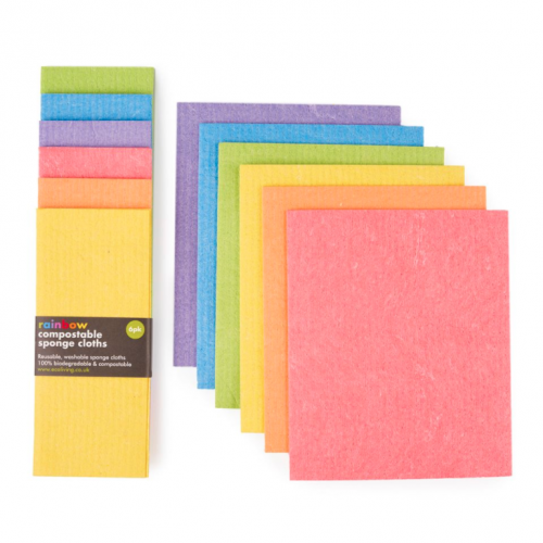 A set of rainbow compostable sponge cloths. Made in Europe. Choose a set of 4 or a set of 6 pack of cleaning cloths.
