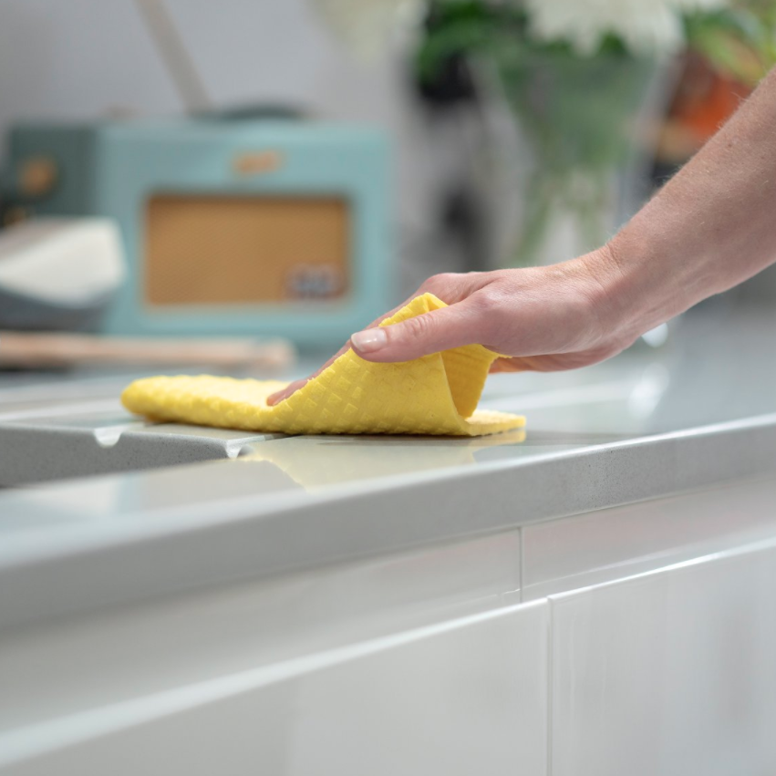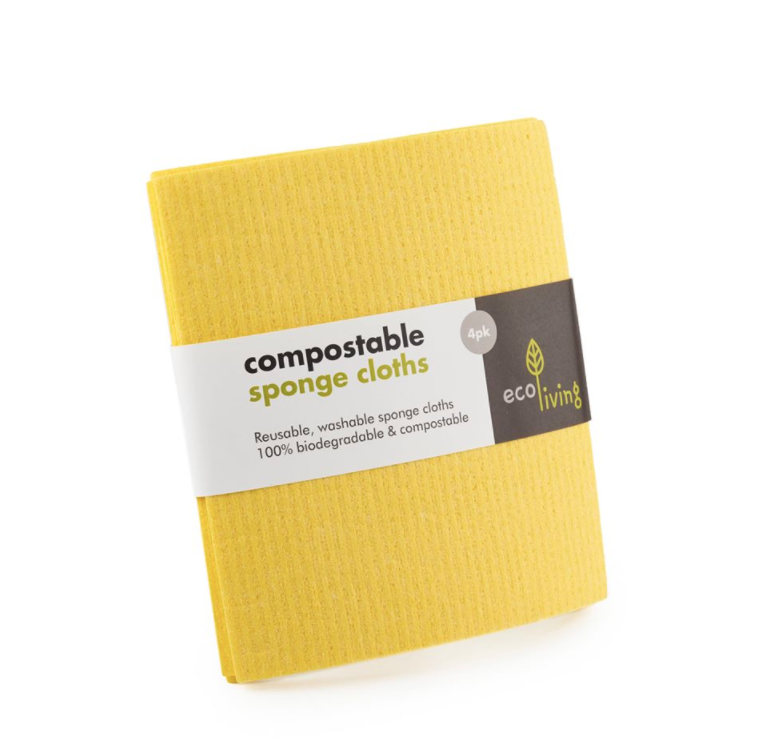 Compostable sponge cleaning cloths, 100% plastic-free and made of natural renewable resources, cotton, wood pulp & flax. They do not emit micro-plastic pollution, unlike classic sponge cloths.