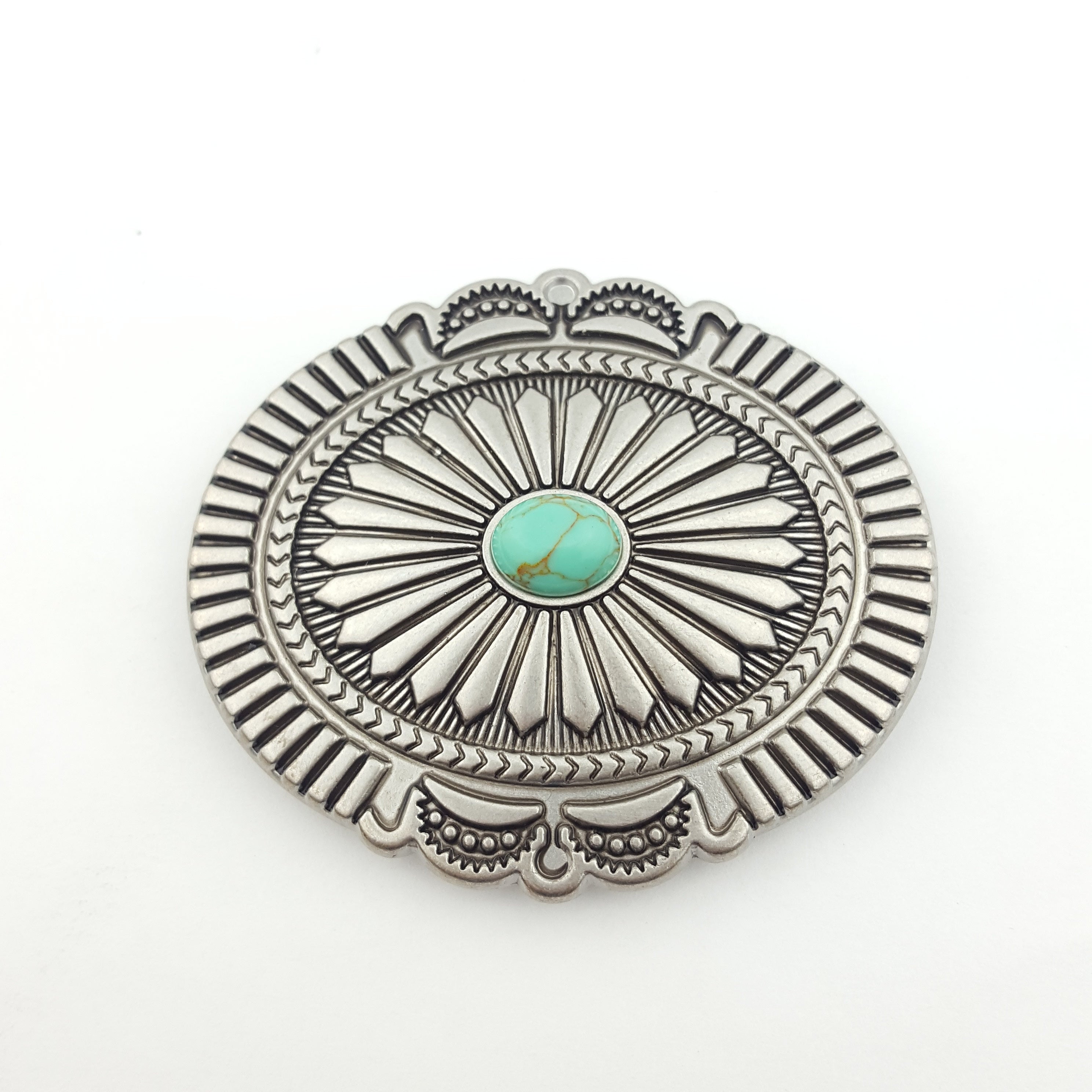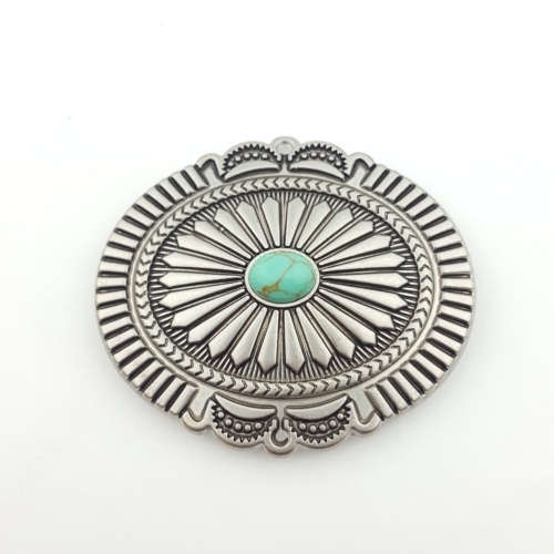 Price is for 2 pieces of these one of a kind western concho with stone In a matte silver metal finish plating Dimension of concho: 2.5″ x 2.1″ 2 post screws on the back post height is about 4 mm
