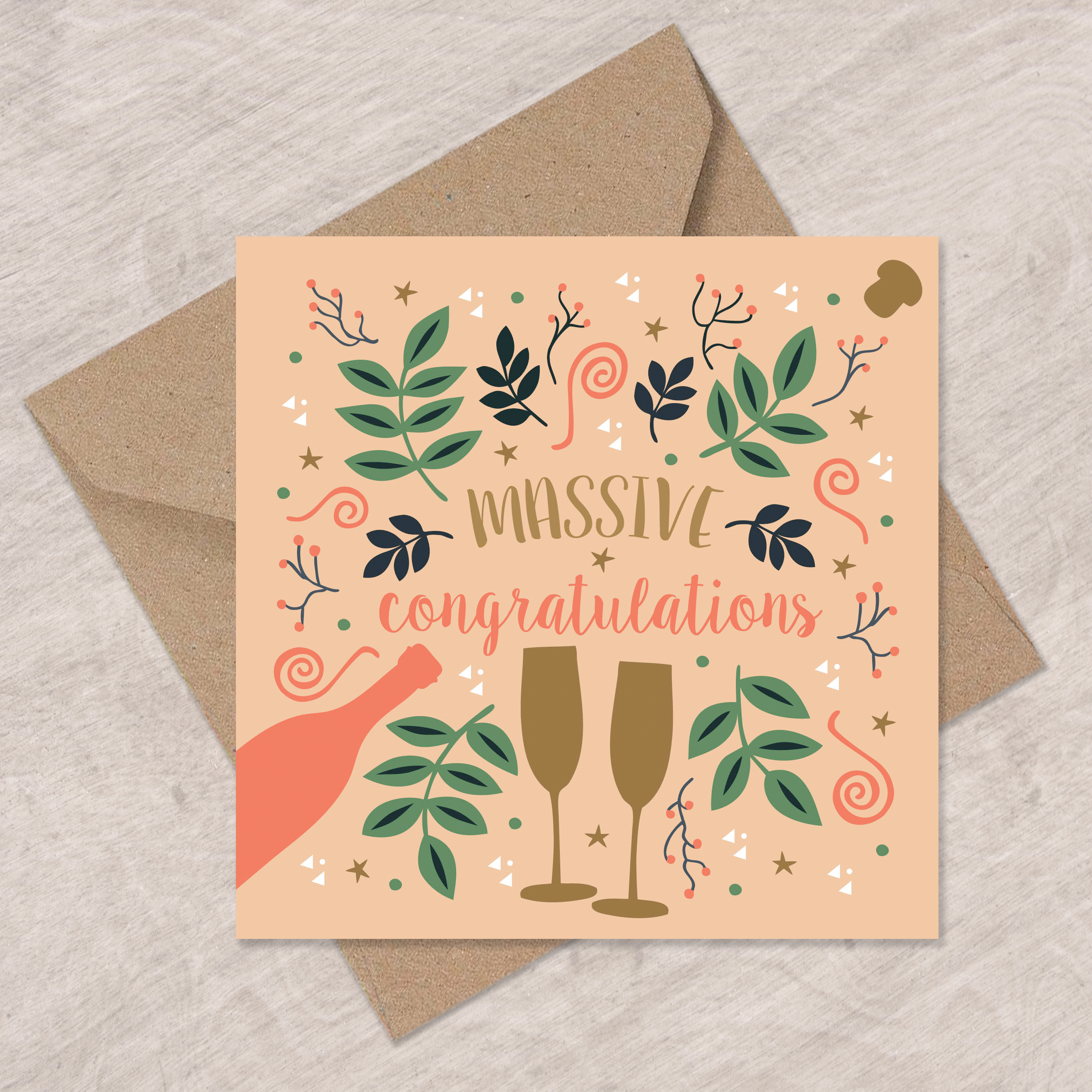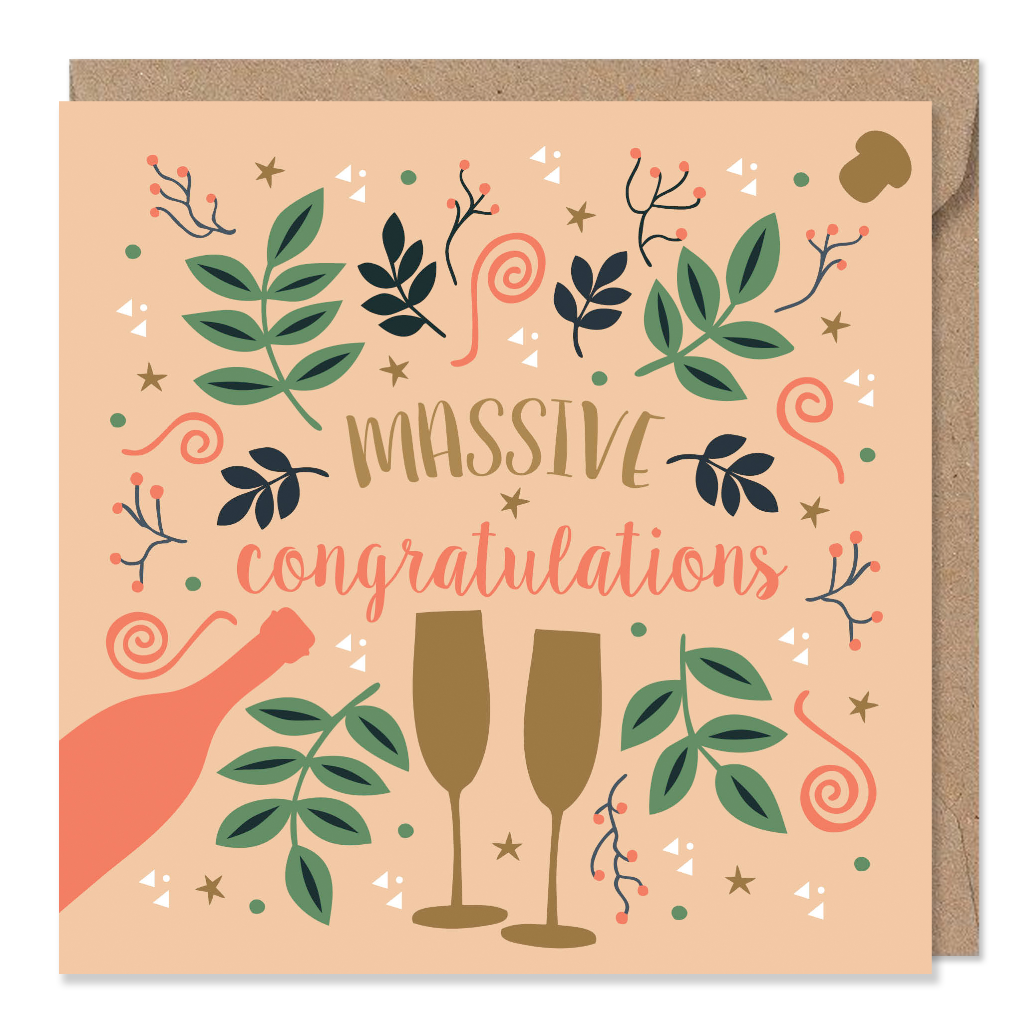 A lovely congratulations card with bubbly and swirls.