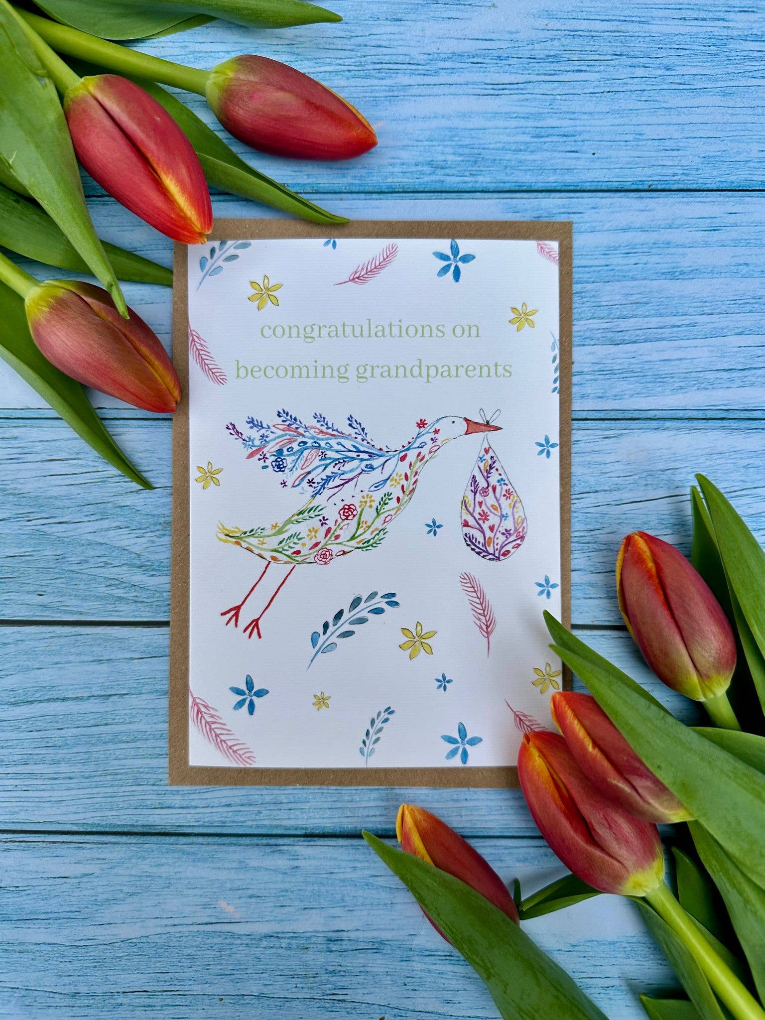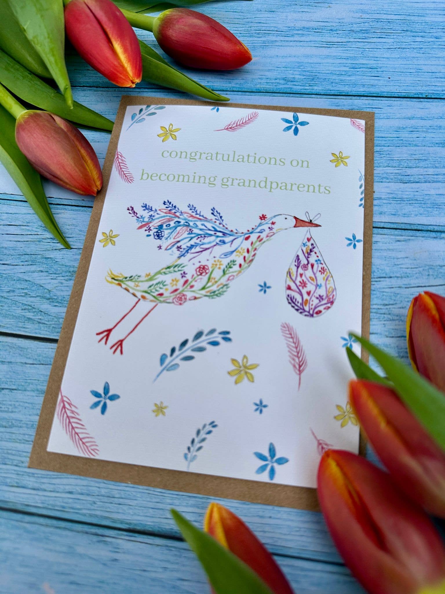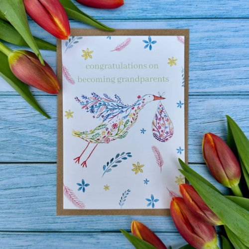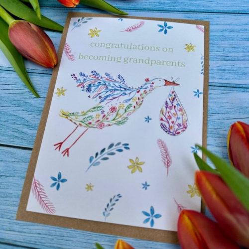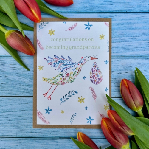 Congratulations Grandparents New Arrival Eco Friendly Card | Eco Friendly Card | Colourful | Blank | Occasion | Greetings | Stork | Nature