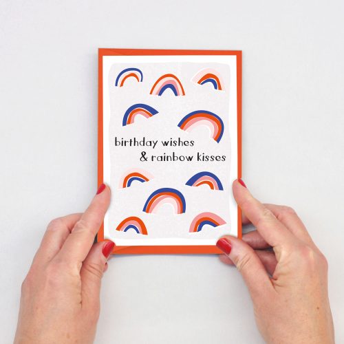‘Birthday wishes and rainbow kisses!’ Whether it’s for a friend, a girlfriend, boyfriend, husband or wife – this cute card is perfect for sending some rainbow birthday love.