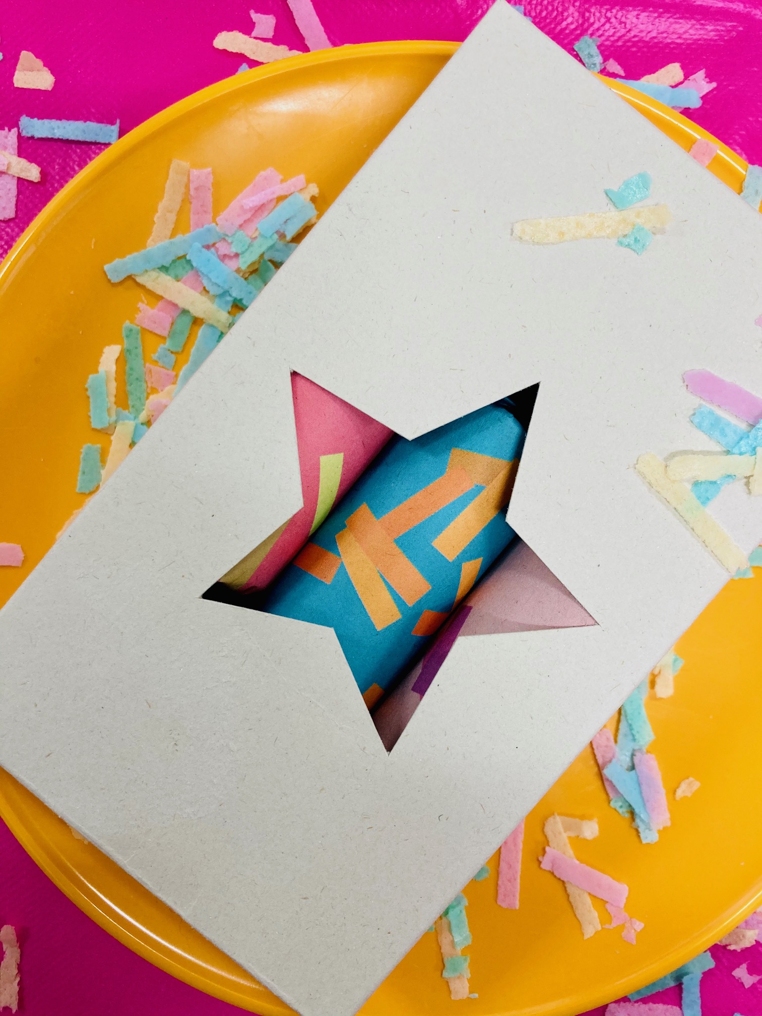 The confetti and saying are made from potato starch and are compostable.