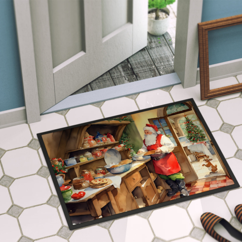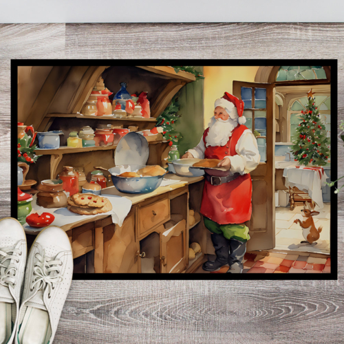 Doormat featuring breed specific Santa Claus artwork. Celebrate Christmas with this Christmas Doormat. Welcome your guests in style with our Artwork Door Mat, designed to withstand almost any weather condition. This mat, measuring approximately 24 by 36 inches, is held together by durable black binding tape. Its top layer, composed of polyester felt, is dyed with the eye-catching image you see on the mat. A few layers below provide the mat with stability, while its rubber bottom is stamped to help prevent slipping and ensures safety. Our mat works wonderfully as both an indoor or outdoor door mat. For cleaning, simply hose it off with water or use a power washer – no need for any cleaner that produces suds. Avoid scrubbing with a brush, instead, opt for the vacuum on floor setting. Designed manufactured and printed in the USA, this mat is a perfect addition to your porch, outdoor kitchen, entryway, or any indoor space. Its unique design makes it a charming decorative rug that greets your guests and adds a stylish touch to your home decor.
