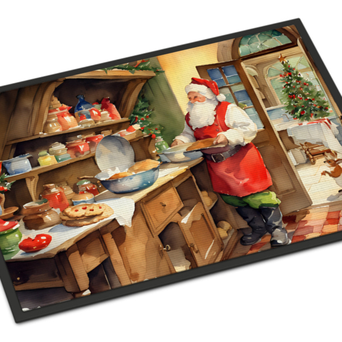 Doormat featuring breed specific Santa Claus artwork. Celebrate Christmas with this Christmas Doormat. Welcome your guests in style with our Artwork Door Mat, designed to withstand almost any weather condition. This mat, measuring approximately 24 by 36 inches, is held together by durable black binding tape. Its top layer, composed of polyester felt, is dyed with the eye-catching image you see on the mat. A few layers below provide the mat with stability, while its rubber bottom is stamped to help prevent slipping and ensures safety. Our mat works wonderfully as both an indoor or outdoor door mat. For cleaning, simply hose it off with water or use a power washer – no need for any cleaner that produces suds. Avoid scrubbing with a brush, instead, opt for the vacuum on floor setting. Designed manufactured and printed in the USA, this mat is a perfect addition to your porch, outdoor kitchen, entryway, or any indoor space. Its unique design makes it a charming decorative rug that greets your guests and adds a stylish touch to your home decor.