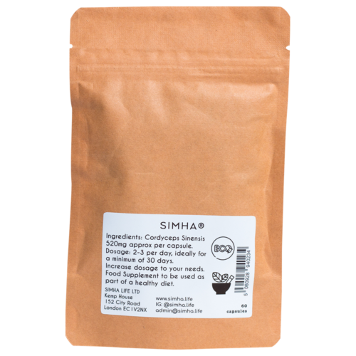 100% Cordyceps (Himalayan Ophiocordyceps sinensis) 520mg vegan cellulose capsules.