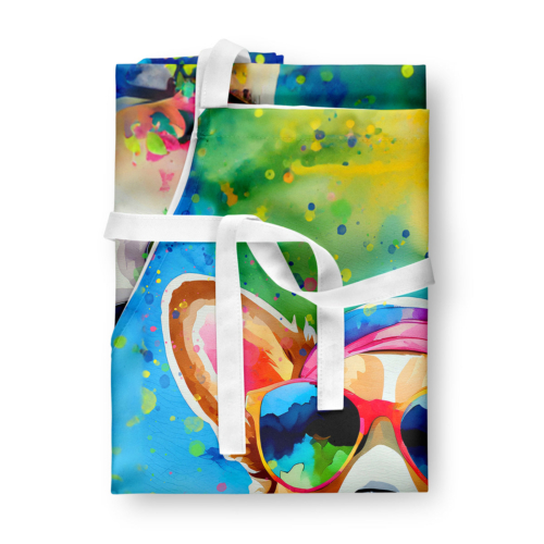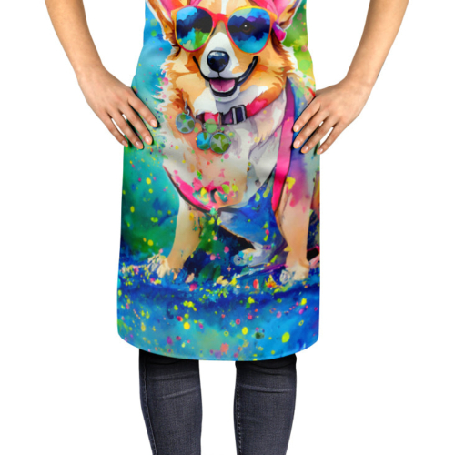 Apron featuring breed specific Corgi artwork. Elevate your cooking, baking, and grilling experiences with our versatile Kitchen or BBQ Apron. This Bib Style apron isn’t just limited to culinary activities – it also serves as an excellent baking apron, artist apron, server apron, gardening apron, or even a dog grooming apron. The apron showcases vibrant full-color artwork contributed by one of our talented artists, bringing a dash of style to your daily tasks. With dimensions of approximately 27″W x 30″H, it provides ample coverage to protect your clothing from spills and splashes. Our apron is meticulously crafted from 100% Ultra Spun Polyester, known for its durability and lightweight nature. The apron comes with white tie straps, ensuring a comfortable and adjustable fit for all. It’s a perfect choice for kitchen apron enthusiasts, whether you are a woman or a man. Designed for easy maintenance, this apron is fully machine washable. The quick-drying polyester material actively reduces staining, keeping your apron looking fresh and new for longer. Our beautifully designed apron isn’t just a functional kitchen accessory – it’s a fashion statement in the culinary world!