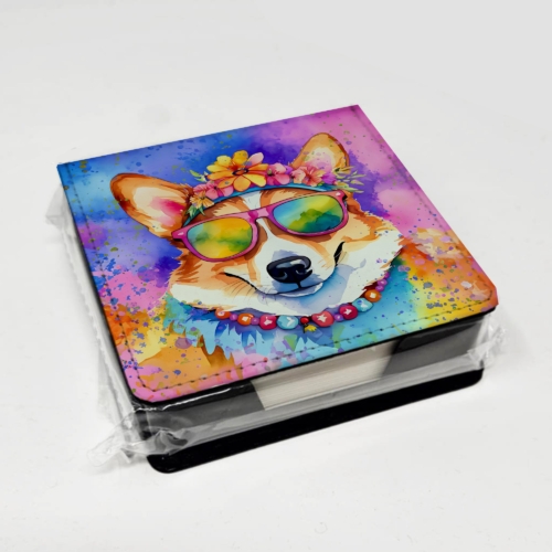 Corgi Hippie Dawg PU Leather Note Paper Holder