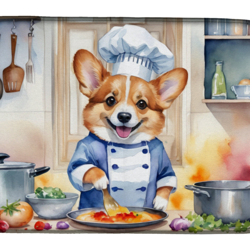 Dish Drying Mat featuring breed specific Corgi artwork. Say goodbye to messy countertops and soggy dish towels with our innovative dish drying mat. Our high-quality dish drying pad is designed to keep your countertops dry while offering a stylish and efficient solution. Whether you’re air drying dishes, glasses, stemware, silverware, pots, pans, bottles, or even fruits and vegetables, our dish mat is the perfect choice. The 14 inches x 22 inches size fits most counters and dish drying racks, and the non-slip design ensures stability. Made with water-absorbent polyester and a polyurethane foam insert, our dish drying mat is not only functional but also durable. It’s machine washable and printed in the USA for long-lasting use. The beautiful artwork adds flair to your kitchen decor, making it a perfect housewarming gift or present for any occasion. Upgrade your kitchen experience with our absorbent and versatile dish drying mat.