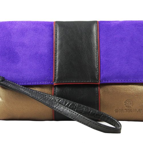 Cosmic Clutch Bag bag is made from soft calf leather with genuine leather which is soft and supple to the touch, the perfect clutch full of bright bold colours made from soft supple leather and suede. It has a side strap that could be disconnected easily, this bag is stunning its a unique clutch bag.