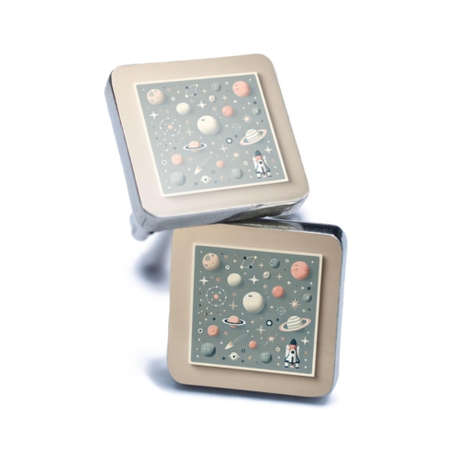 Embark on a journey through the cosmos with these striking Cosmic Space Cufflinks. Featuring an intricate design of planets, stars, and a rocket, these cufflinks are perfect for astronomy enthusiasts and space explorers at heart. They capture the beauty and mystery of the universe, making them a stylish and meaningful accessory for any occasion. Crafted with premium materials and a sleek polished finish, these cufflinks are as durable as they are elegant. Perfect for formal events or casual wear, they bring a touch of the celestial to your wardrobe. Whether as a gift for a space lover or a personal statement of your love for the stars, these cufflinks are a timeless addition to any collection. Celebrate the universe with these unique and captivating cufflinks! Stunning Space-Themed Design: Features a vibrant illustration of planets, stars, and a rocket, celebrating the wonders of the cosmos. Premium Craftsmanship: Made with high-quality materials and a polished finish for durability and timeless style. Celebrate the Universe: A unique accessory for astronomy lovers and those captivated by space exploration. Versatile and Stylish: Suitable for formal events, work attire, or casual outings, adding a celestial touch to any outfit. Perfect Gift Idea: Ideal for stargazers, science enthusiasts, or anyone who dreams of the stars.