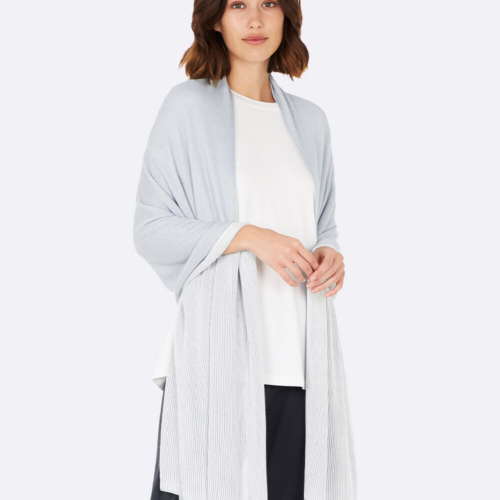 Available in both Storm and Dove, the cosy Knit Wrap features a two-tone effect with a contrast natural white knit. We’re pleased to say that the cosy Knit Wrap is made from 100% bamboo viscose. Not only does this mean you’re wrapping up in a breathable, durable piece of knitwear that’s great for your skin, but it’s great for the planet too. Fast growing and regenerating, some species of bamboo shoot up as much as 3 feet a day! New stems are able to be harvested again and again. Try to wrap your mind around that as you wrap up in this gorgeous wrap.
