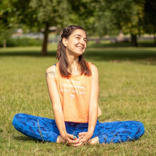 The fold-over waistband means you can feel confident as it can be worn to reveal the belly or to protect it depending on your cyclical moods. The leggings are full length with the flexibility to also wear them calf-length too. Looks fantastic with the matching faith bamboo yoga bra or you can add a splash of colour with our peach yoga bra too!