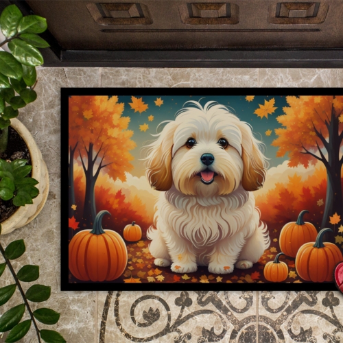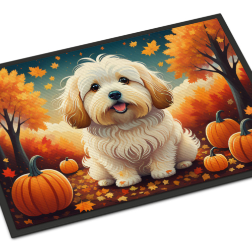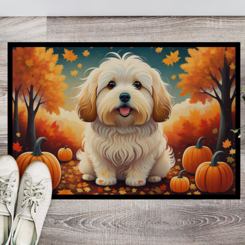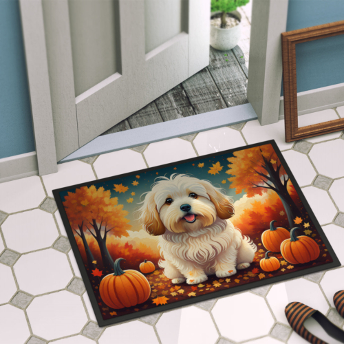 Doormat featuring breed specific Coton De Tulear artwork. Welcome your guests in style with our Artwork Door Mat, designed to withstand almost any weather condition. This mat, measuring approximately 24 by 36 inches, is held together by durable black binding tape. Its top layer, composed of polyester felt, is dyed with the eye-catching image you see on the mat. A few layers below provide the mat with stability, while its rubber bottom is stamped to help prevent slipping and ensures safety. Our mat works wonderfully as both an indoor or outdoor door mat. For cleaning, simply hose it off with water or use a power washer – no need for any cleaner that produces suds. Avoid scrubbing with a brush, instead, opt for the vacuum on floor setting. Designed manufactured and printed in the USA, this mat is a perfect addition to your porch, outdoor kitchen, entryway, or any indoor space. Its unique design makes it a charming decorative rug that greets your guests and adds a stylish touch to your home decor.