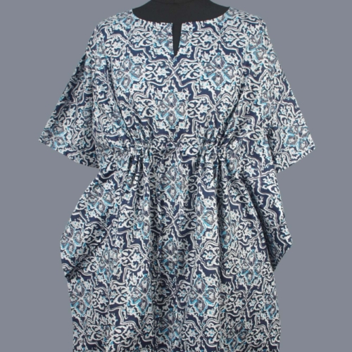 Cotton Kimono Dressing Gown Robe – Blue Abstract