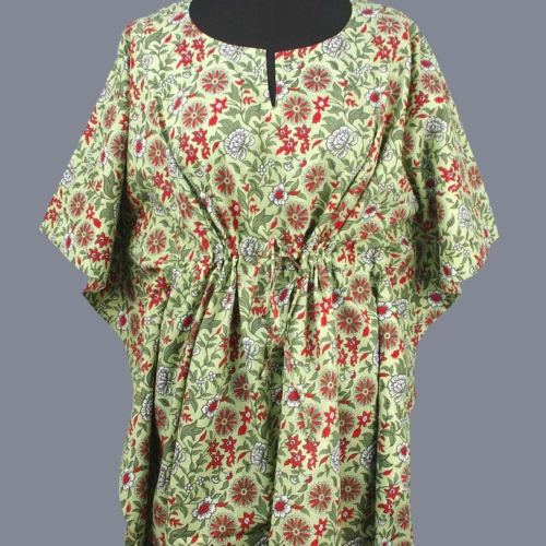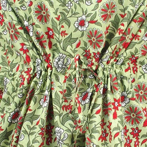 Cotton Kimono Dressing Gown Robe – Green Red Floral