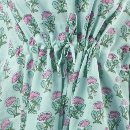 Cotton Kimono Dressing Gown Robe – Mint Floral