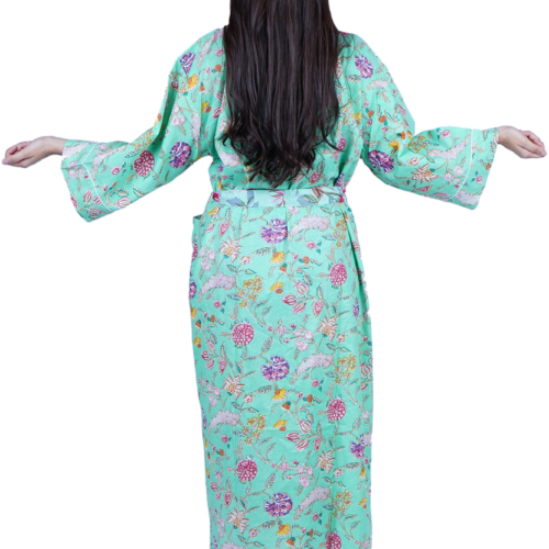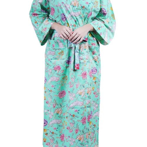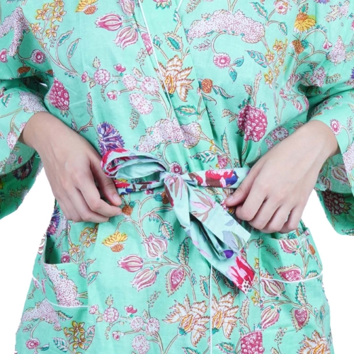 Cotton Kimono Dressing Gown Robe – Mint Wild Flowers