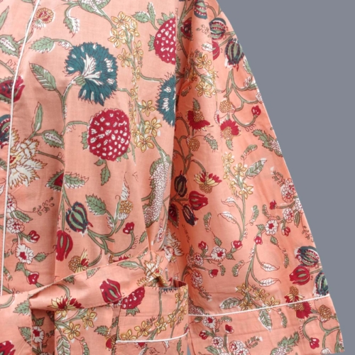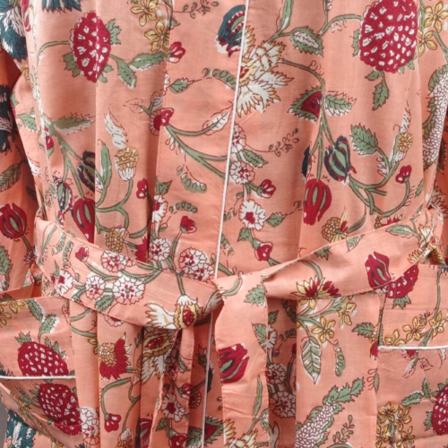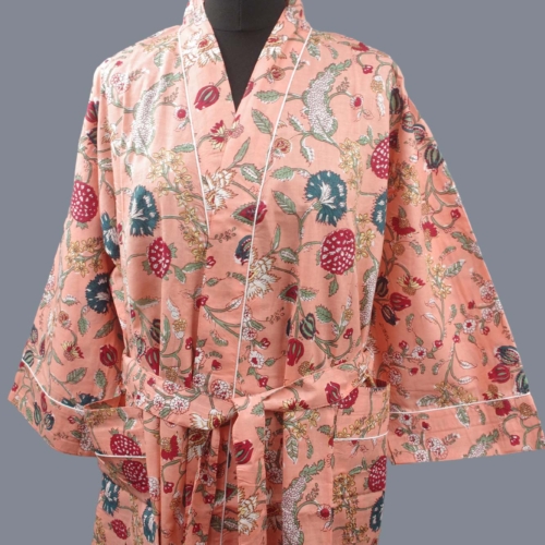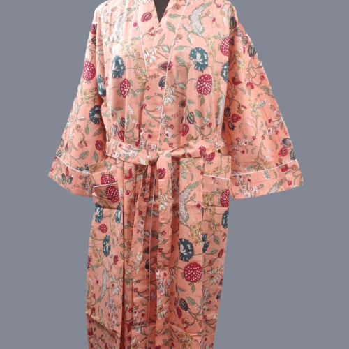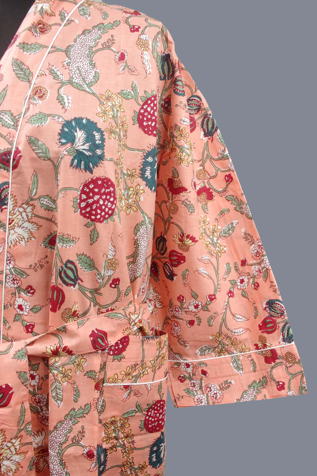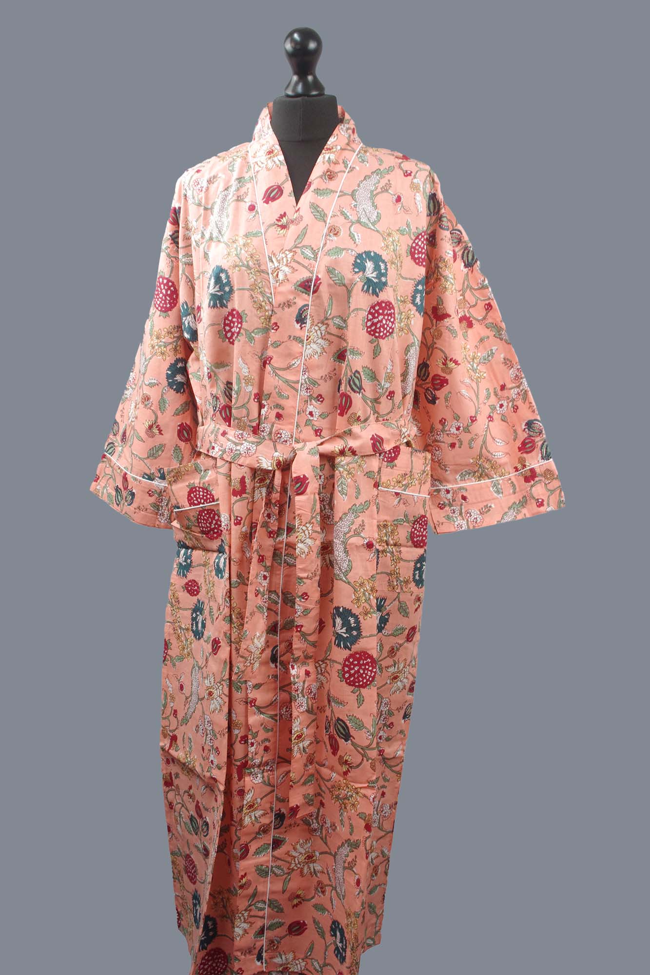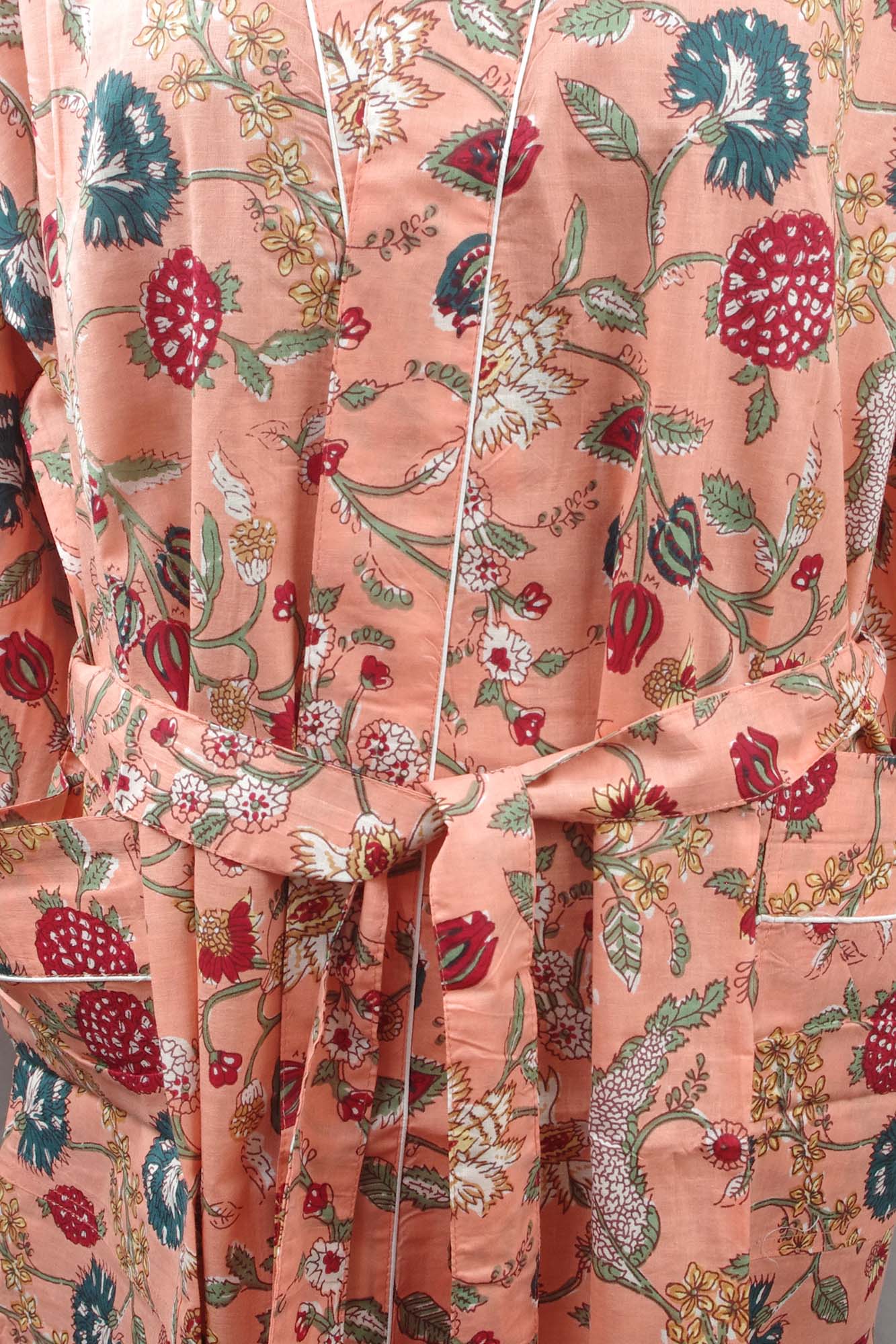 Cotton Kimono Dressing Gown Robe – Peach Multifloral