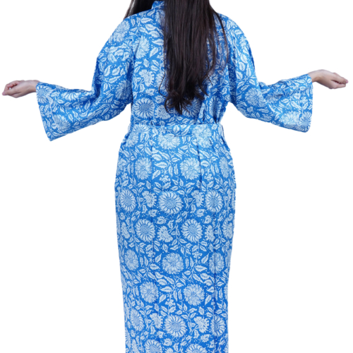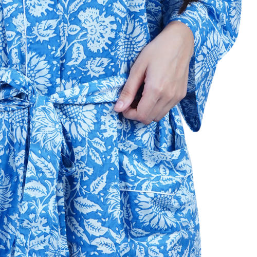 Cotton Kimono Dressing Gown Robe- Sky Blue Sunflowers