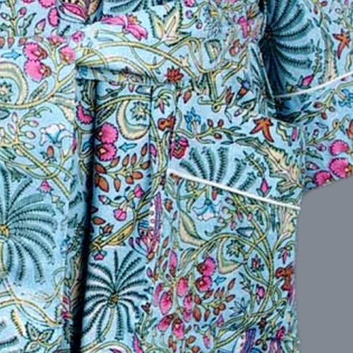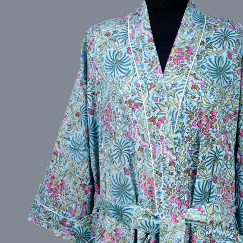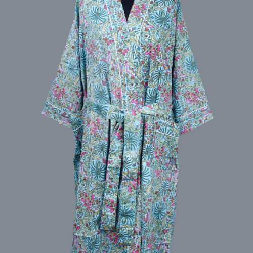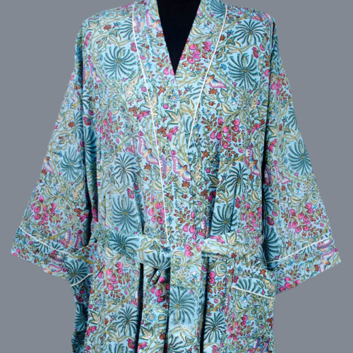 Cotton Kimono Dressing Gown Robe – Turquoise Palm Tree