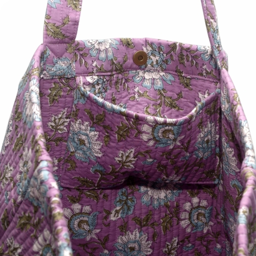 This purple floral Design cotton quilted large shopping /beach bag is eco-friendly, reusable, and easy to carry.