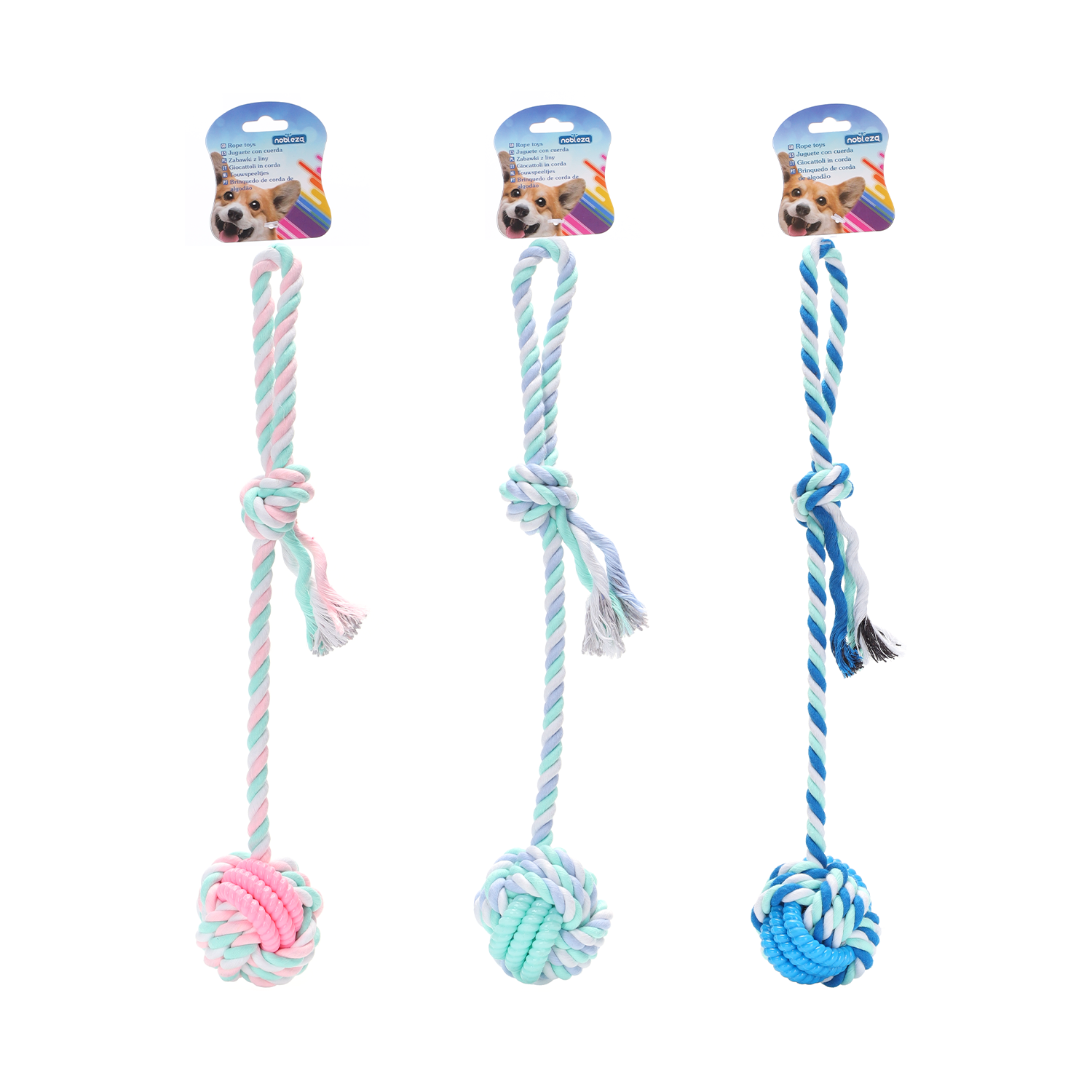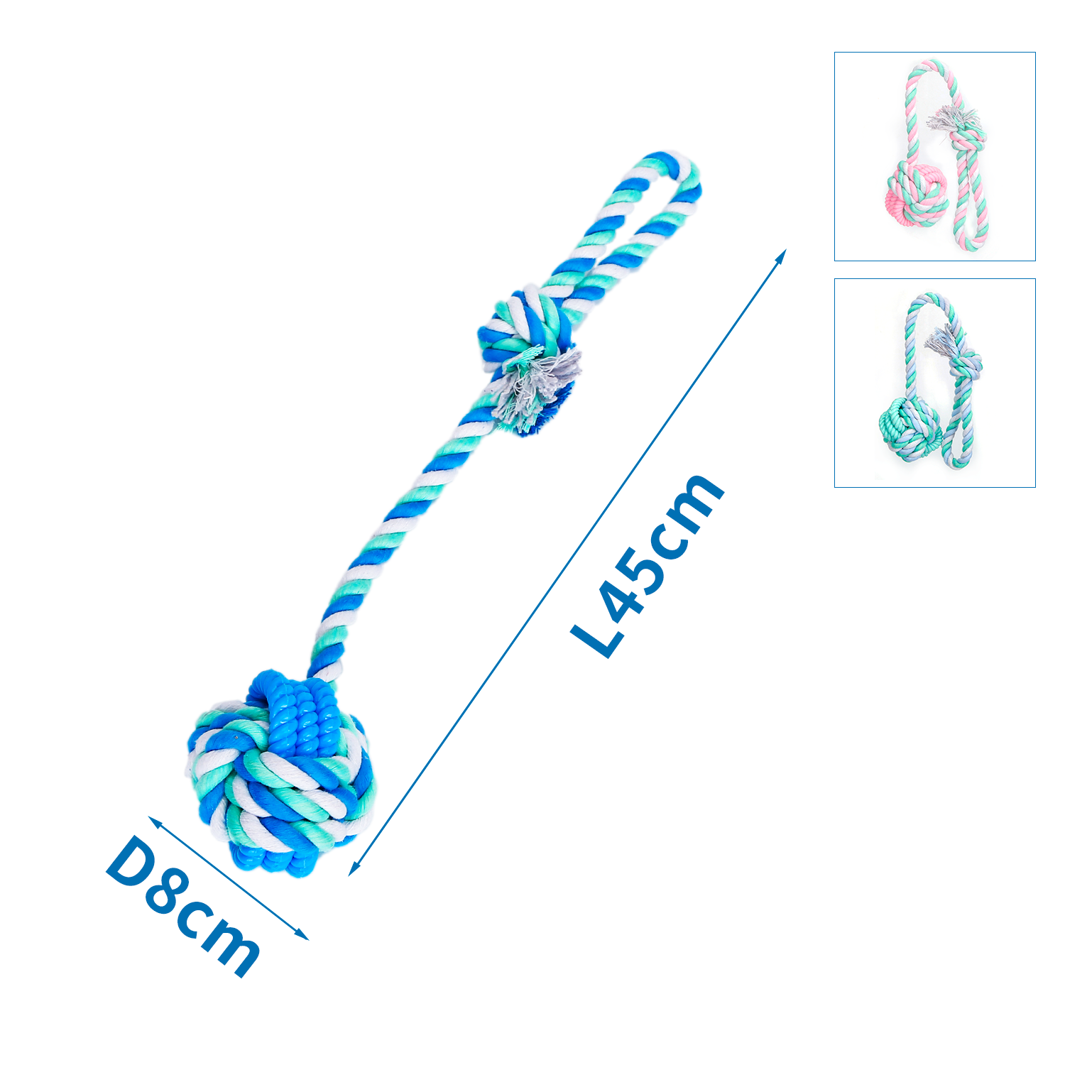 Cotton Rope Toy+Tpr D8*L45Cm 170-180Gpink/Blue/Purple