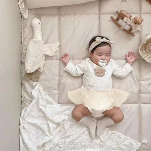 The Cozy Bear Tutu is a soft and cozy bodysuit for babies. Made of 100% cotton and mesh, it features a bear print design on a soft and comfortable fabric. The bodysuit is ideal for summer days, making it perfect for newborns up to 2 years old. The Bear Bodysuit provides a cozy and comfortable day experience for your little one. Made for those who like to get dressed easy with snap-free poppers. Made from our signature 97% cotton and 3% spandex. Nickel-free popper fastening Teddy bear character print Cream Yellow Tutu