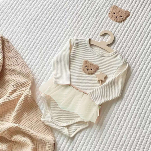 The Cozy Bear Tutu is a soft and cozy bodysuit for babies. Made of 100% cotton and mesh, it features a bear print design on a soft and comfortable fabric. The bodysuit is ideal for summer days, making it perfect for newborns up to 2 years old. The Bear Bodysuit provides a cozy and comfortable day experience for your little one. Made for those who like to get dressed easy with snap-free poppers. Made from our signature 97% cotton and 3% spandex. Nickel-free popper fastening Teddy bear character print Cream Yellow Tutu