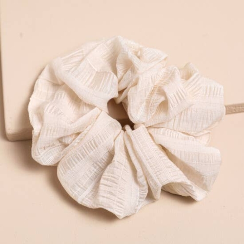A cream-coloured large hair accessoryMade using a ruched and pleated fabricTrend led in style with an oversized lookA modern addition to any accessory collectionDimensions: elasticated inner circumference – 9cm outer circumference – 44cmMade from: fabric