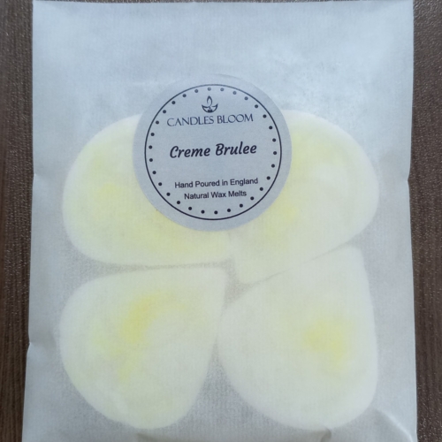 Creme Brulee strong scented wax melts are hand poured in England, UK. All of our luxury scented wax melts are hand made with natural rapeseed and coconut wax and nothing else. Free from palm, soy, beeswax, paraffin, polymers, GMO material.
