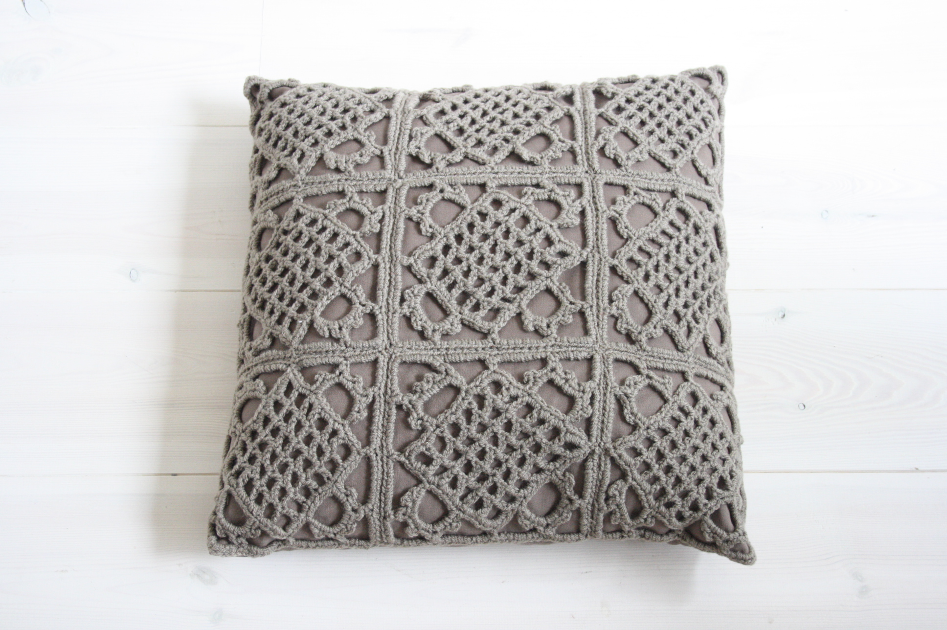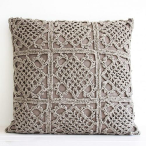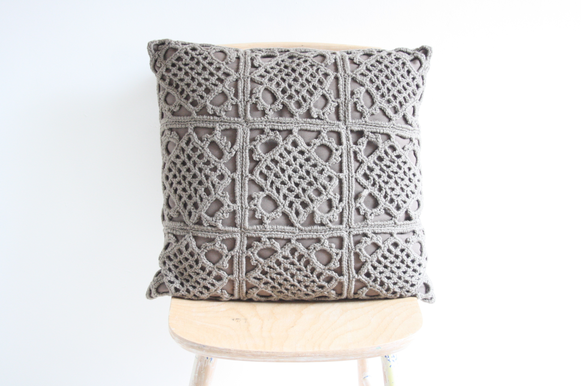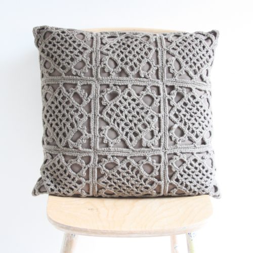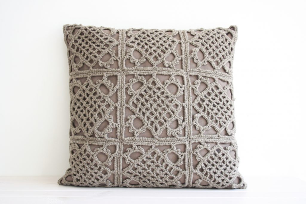Crochet pillow L – Taupe