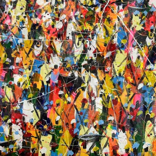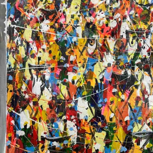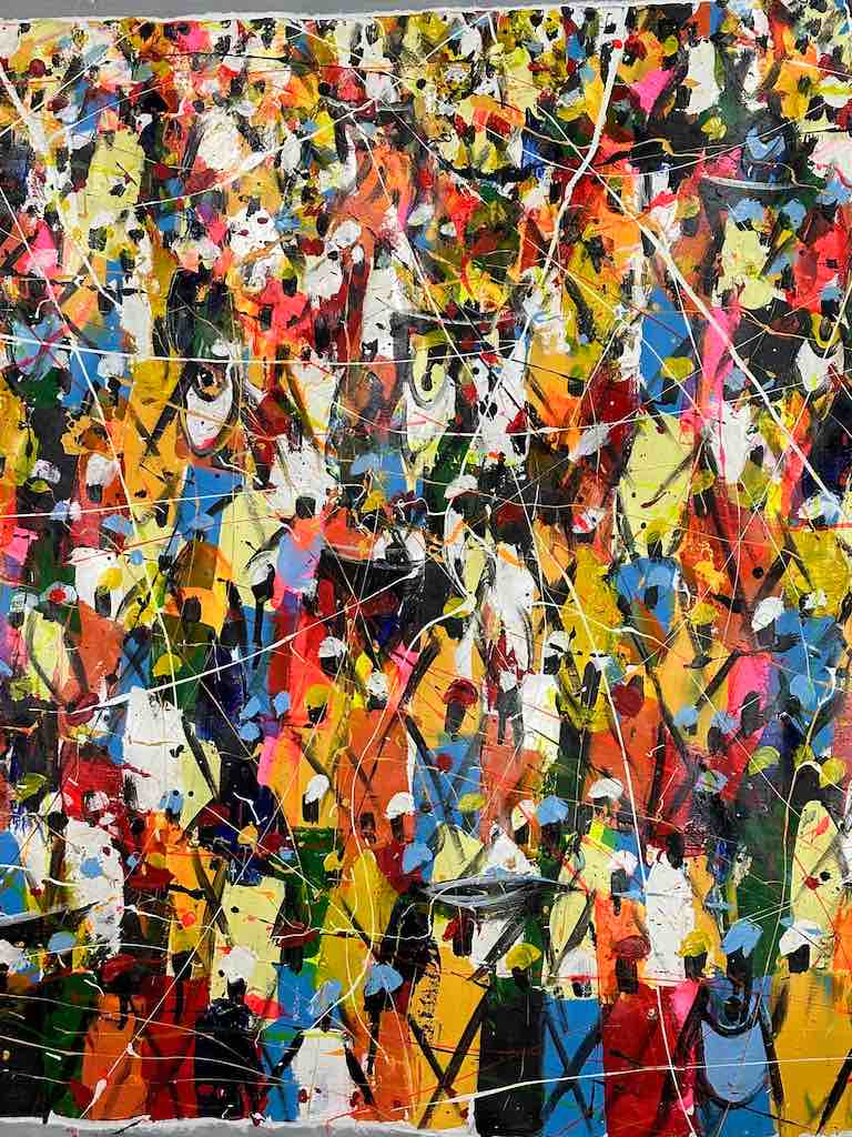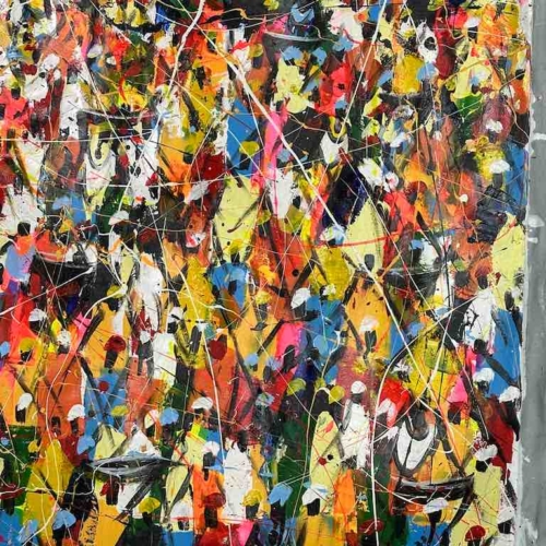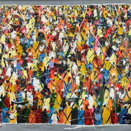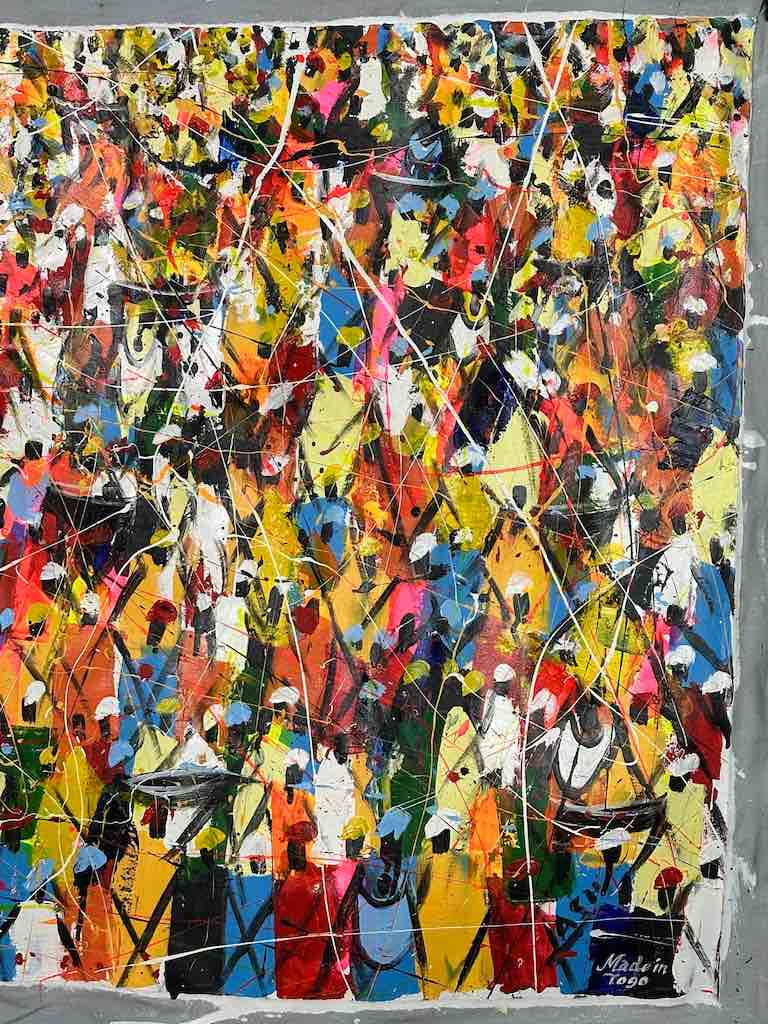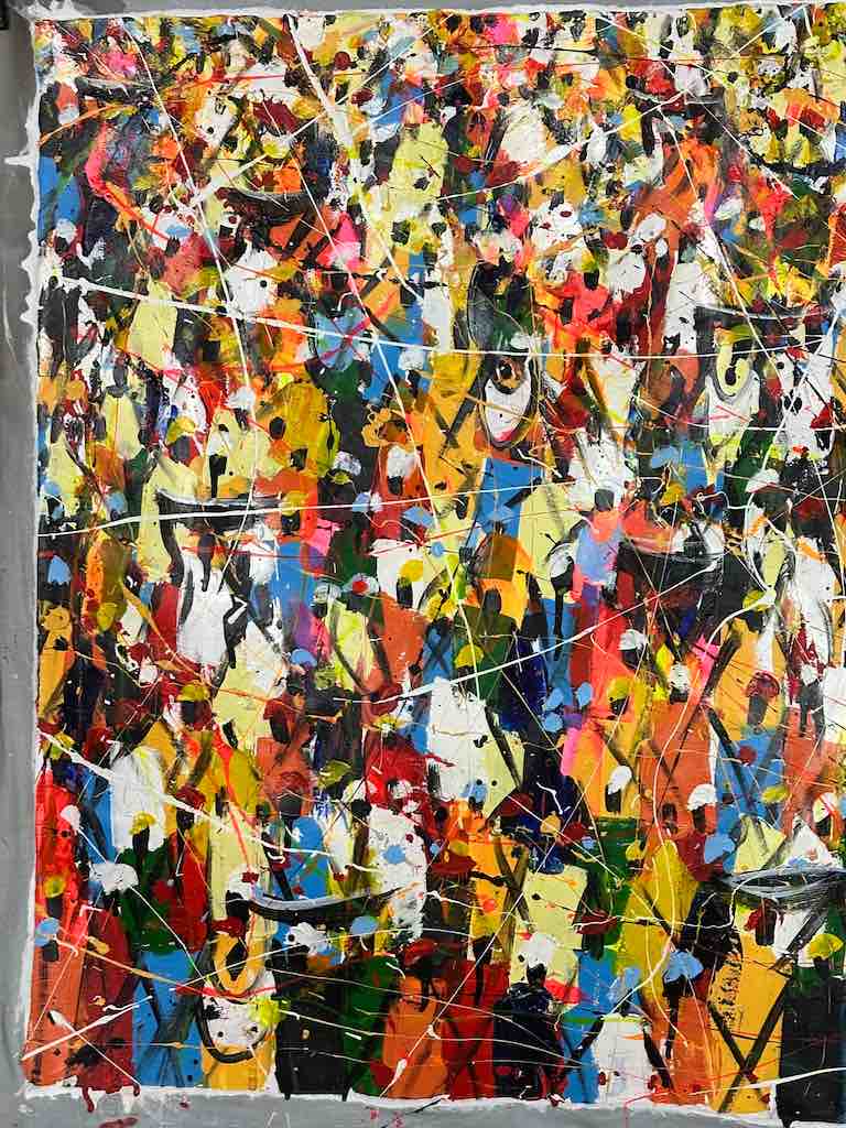 Crowd | Contemporary African Painting on Canvas Frameable Art | 36 x 28″
