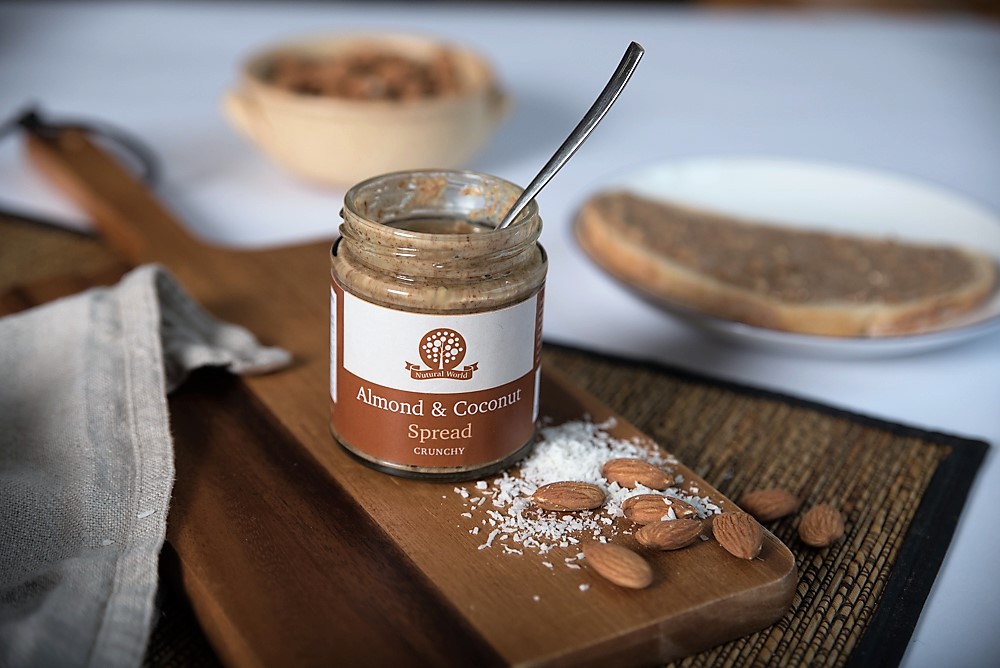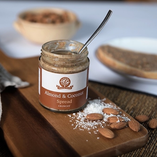 Deliciously crunchy almond spread, enriched with coconut flesh and highest quality vanilla beans. With no added sugar or oil but with a generous mix of almond pieces to add firm texture, this unique spread is highly nutritious and absolutely delicious. Excellent as a spread and fabulous as an ingredient in smoothies, oriental cooking or baking.