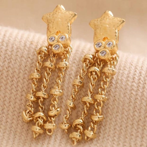 Crystal Shooting Star Drop Earrings in Gold