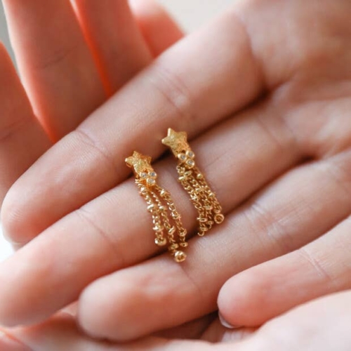 Crystal Shooting Star Drop Earrings in Gold