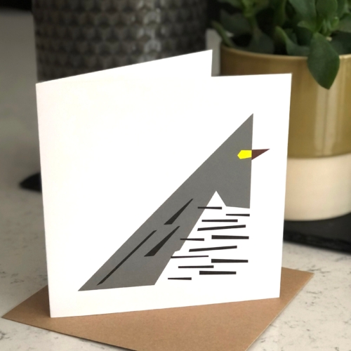 Square 15 x15 cm card with geometric bird design. The inside is blank for your message. 300gsm recycled card stock in cellophane pocket (can be send without cello pocket if requested)