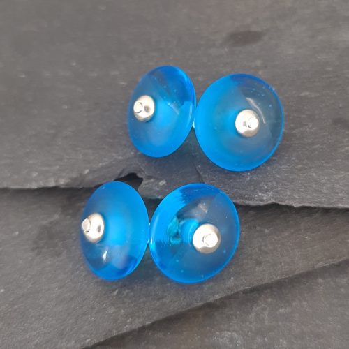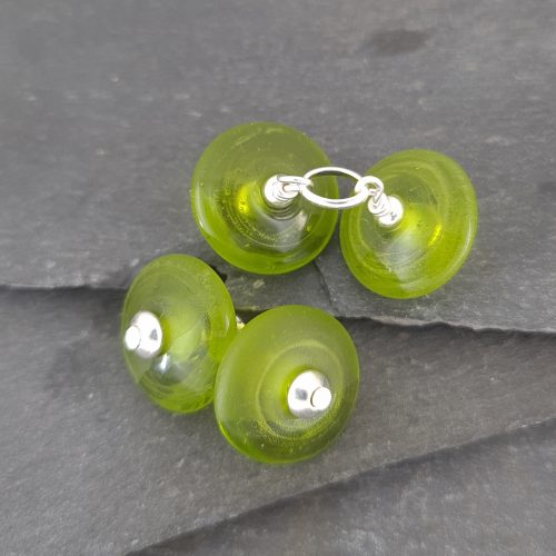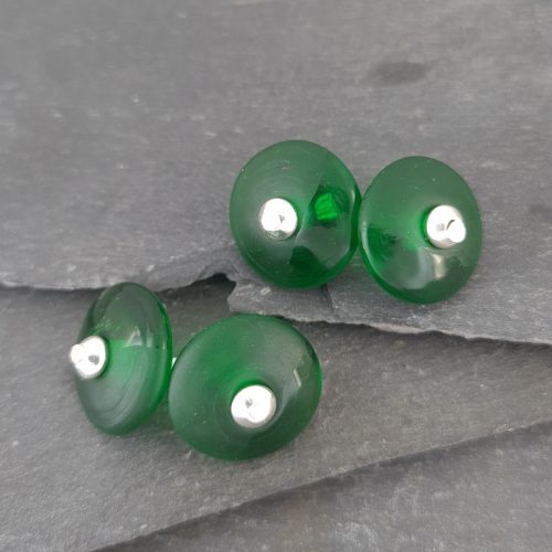 The handmade glass discs are approximately 18mm across and the link measures 15mm. Each bead is individually hand made so will vary slightly from the images.