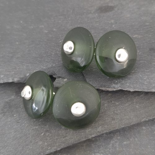 Finally, A Little Trinket for the gentlemen! These handmade cufflinks consist of glass disc beads with a sterling silver linkage. They will secure double or french cuff shirts with style.