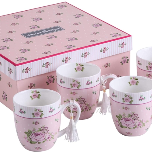 Brand: London BoutiqueColor: Rose PinkFeatures: Capacity: 330ml, size: top diameter: 8.5cm, bottom diameter:6cm, high: 10.8cm Suitable for coffee machine, Microwave and Dishwasher safe High quality Fine China porcelain,7 designs–Vintage Retro Rose Pink, Vintage Retro Rose Blue, Bird Rose Butterfly, butterflies Vintage and Contemporary design, Hand Painted in a great detail Ideal gift present—Taylor made gift box, with matching design of the mugs Binding: Kitchen & HomeDetails: Product Description This beautiful bone china mugs come with 7 same mugs in a same designed pattern gift box, perfect for gift present for everyone and any occasions Box Contains 1 x Retro Vintage Shabby Chic Tea Coffee Cup Mug Set in Gift BoxPackage Dimensions: 10.5 x 10.3 x 4.6 inches