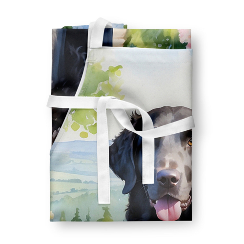 Apron featuring breed specific Curly-Coated Retriever artwork. Elevate your cooking, baking, and grilling experiences with our versatile Kitchen or BBQ Apron. This Bib Style apron isn’t just limited to culinary activities – it also serves as an excellent baking apron, artist apron, server apron, gardening apron, or even a dog grooming apron. The apron showcases vibrant full-color artwork contributed by one of our talented artists, bringing a dash of style to your daily tasks. With dimensions of approximately 27″W x 30″H, it provides ample coverage to protect your clothing from spills and splashes. Our apron is meticulously crafted from 100% Ultra Spun Polyester, known for its durability and lightweight nature. The apron comes with white tie straps, ensuring a comfortable and adjustable fit for all. It’s a perfect choice for kitchen apron enthusiasts, whether you are a woman or a man. Designed for easy maintenance, this apron is fully machine washable. The quick-drying polyester material actively reduces staining, keeping your apron looking fresh and new for longer. Our beautifully designed apron isn’t just a functional kitchen accessory – it’s a fashion statement in the culinary world!