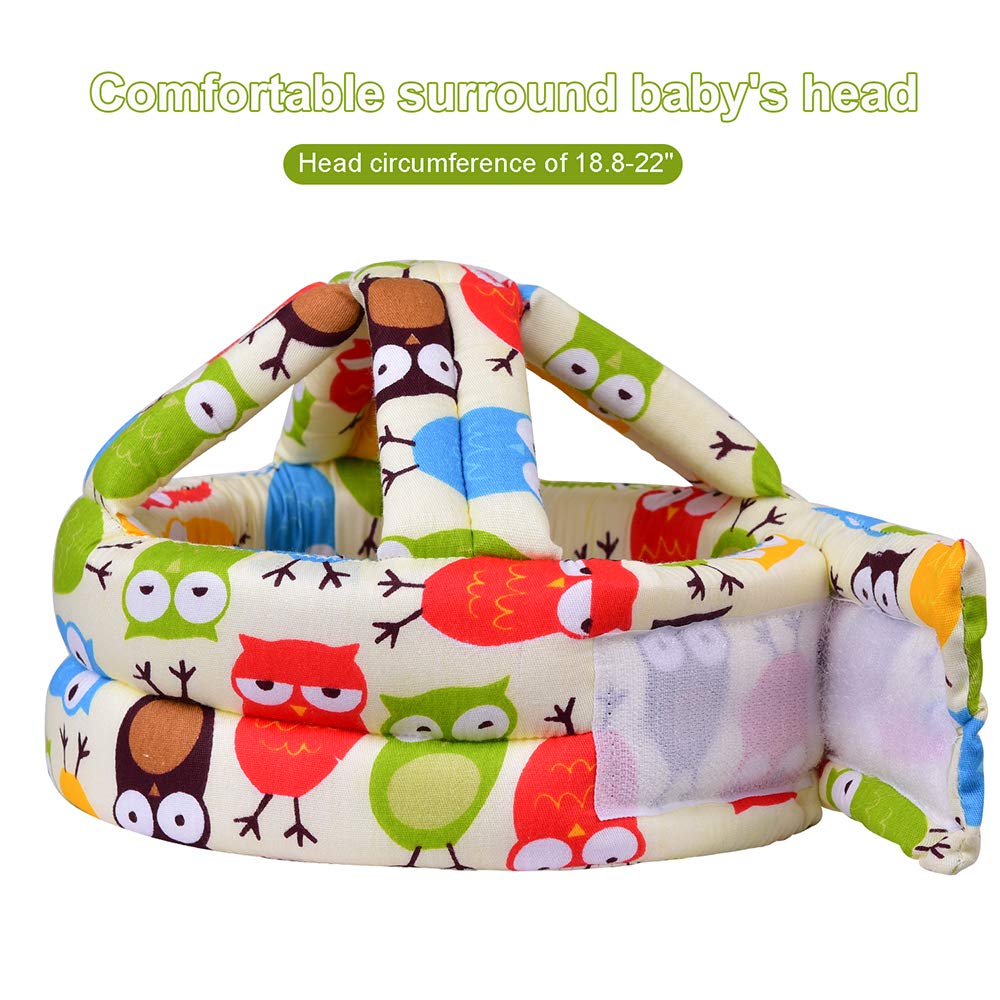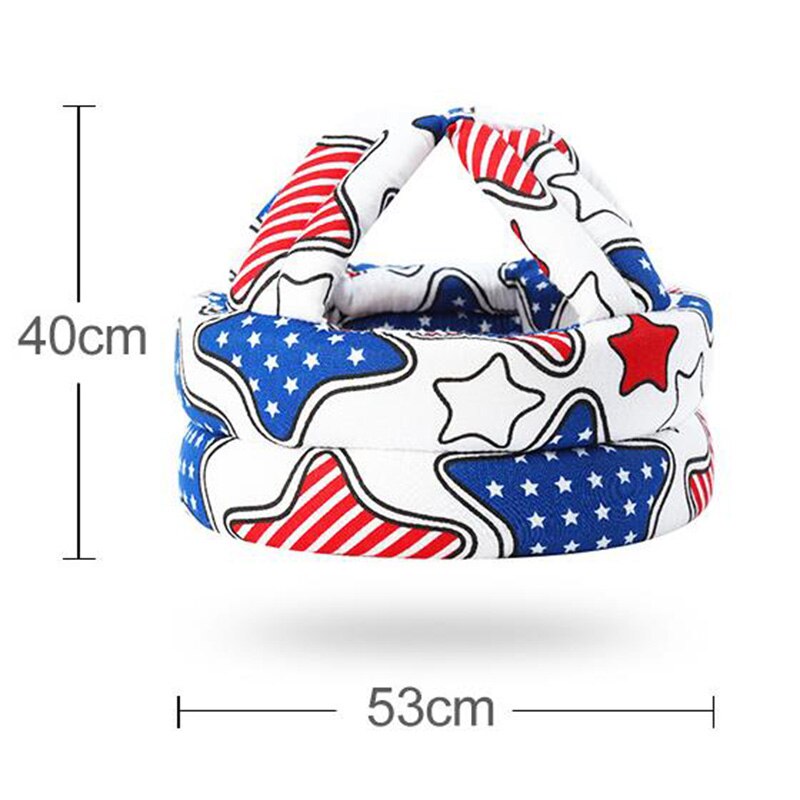 Shock absorption and impact resistance protects your babies. Perfect head protection to keep your little ones safe when they are learning how to walk or as they play around the house or outside.Made of high grade cotton material, the fill-in layer is a high density and elastic sponge free from smell. Soft, super lightweight and sweat-absorbent, padded design provides a comfortable & breathable fit. The baby helmet very comfortable to wear. Lightweight, breathable and lovely baby safety helmet offers most ideal protection for toddlers during crawling/playing/walking; The head cushion can effectively protect the baby during the collision and the friction caused by the bump and fall. The bumper bonnet provide a reduced shock, cushioning effect, prevent or reduce the baby’s head injuriesThe outer layer is made of cotton, the fill-in layer is a high density and elastic sponge free from smell. Designed for maximum shock absorption and impact resistanceWeighs about 3 ounces and thickness less than an inch, the cotton belts will help securing the product on baby’s head with maximum comfortHalmet is washable with water and there will not be any deforming after repeated wash