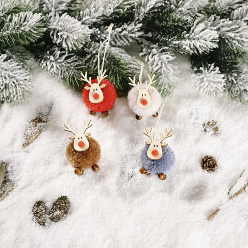 5m x 5cm grey pom pom fabric/wood hanging Elk decoration. the hanging element is approx 9cm. Sold in packs of 6 with a point of sale label to hang them. Availble in cream and red within our range.